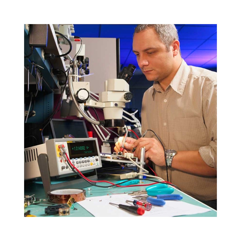 Точность и универсальность для стендовых или системных приложений: Разрешение 6,5 разрядов Базовое напряжение пост. тока, точность до 0,0024% Двойной экран От 100мкА до 10А, разрешение до 100пА Широкий диапазон сопротивления от 10Ом до 1ГОм с разрешением до 10мкОм 2 х 4Ом 4-проводной измерительный метод Обе модели используются для измерения частоты и периода Модель 8846A измеряет также емкостное сопротивление и температуру USB-порт (8846A) Сравнение Fluke 45 и Agilent 34401A Графический дисплей Режим записи Trendplot™ без использования бумаги, статистика, гистограмма CAT I 1000В, CAT II 600В Точные 6,5-разрядные мультиметры Fluke 8845A и 8846A обеспечивают точность и универсальность для самых сложных стендовых и системных измерений. Эти датчики являются высокоэффективными и включают в себя много полезных и удобных в использовании функций. Этицифровые мультиметрывыполняют функции многофункционального DMM, включая измерение напряжения, сопротивления, силы тока. Базовая точность измерения напряжения пост. тока составляет до 0,0024%, диапазон силы тока — 10А, а широкий диапазон сопротивления позволяет создавать любые комбинации измерительных систем. Вы можете также использовать модели 8845A и 8846A для измерения частоты и периода. Кроме этого, с помощью модели 8846A можно измерять температуру и емкостное сопротивление. Функция счетчика, датчик емкостного сопротивления и термометра встроены в систему, что делает ее более универсальной. Увеличьте возможности датчиков с помощью режима графического отображения, в том числе режима регистрации данных без бумаги TrendplotTM, статистических расчетов и построения гистограмм — уникальных в своем роде функций мультиметров. Как и все продукты Fluke, эти датчики отличаются высокой надежностью и долговечностью. Уникальная комбинация функций и производительности позволяет использовать продукты 8845A и 8846A при решении ряда задач, в том числе на производственных испытаниях, при разработке и обслуживании. Двойной экран и универсальные графические возможности Модели 8845A/8846A имеют уникальный двойной дисплей, который позволяет измерять два разных параметра одного сигнала, используя всего одно тестовое соединение. Для обнаружения дефектов качества измерения, таких как уход, неравномерность и нестабильность, текущие данные можно просматривать в виде трендов или гистограмм в уникальном режиме анализа. В данном классе приборов таких графических возможностей нет ни у одного другого прибора. Проводите 4-проводные измерения с использованием всего 2 кабелей Запатентованные раздельные гнезда контактов для реализации функции 2х4Ом позволяют вам выполнять 4-проводные измерения с использованием всего двух (а не четырех) кабелей. Специальный аксессуар для диагностических выводов позволяет установить соединение. Вы получаете отличное разрешение и точность измерений, а также удобство при использовании одной пары проводов. Несколько разъемов позволяют максимально гибко формировать систему Выберите подходящий интерфейс для подключения 8845A/8846A к ПК: последовательный, IEEE-488 или Ethernet-интерфейсы для обеих моделей являются стандартными. Датчик 8846A имеет USB-порт для удобной передачи данных с помощью внешних устройств USB. ПО и драйверы FlukeView® повышают эффективность ПК и совместимы со многими другими приложениями FlukeView Formsповысит производительность инструмента Fluke 