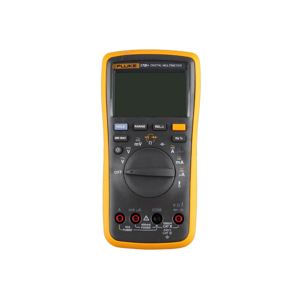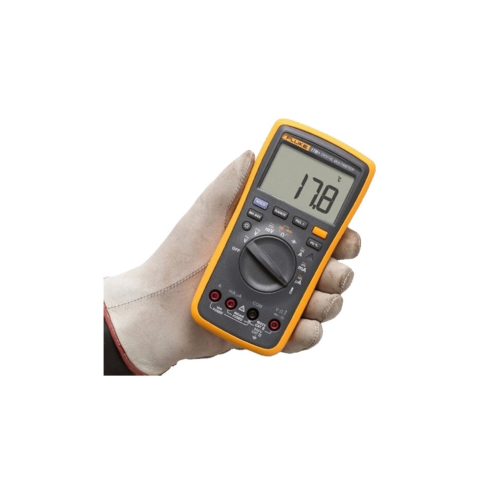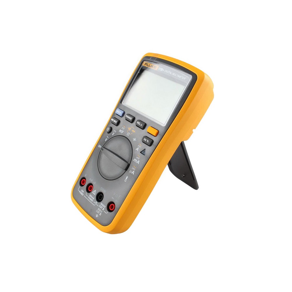 Мультиметр Fluke 17B+ относится к классу многофункциональных приборов, измеряющих с высокой точностью целый ряд параметров электрических цепей. Портативный и удобный в управлении мультиметр Fluke 17B+ отвечает высоким требованиям, которые традиционно предъявляет компания Fluke ко всем своим продуктам. Хотя тестер совмещает в себе большое количество функций различных измерительных приборов, точность измерений остаётся достаточно высокой: ±0,5-1,5%. От предыдущей модели Fluke 17B+ отличает более эргономичный корпус. Наличие в новой модификации широкоформатного дисплея позволяет размещать на его экране большой объём цифровой информации. Инженеры Fluke дополнительно усилили защиту прибора, внедрив функцию предупреждения о превышении допустимого уровня измеряемого напряжения. Таким образом, намного проще избежать случайного выхода прибора из строя. С помощью мультиметра Fluke 17B+ производятся следующие измерения следующих величин: напряжения постоянного и переменного тока до 1000 В;силы переменного и постоянного тока до 10 А;величины электрического сопротивления до 40 Мом;ёмкости до 1000 мкФ. Тестер способен осуществлять измерения силы и напряжения переменного тока в сетях, питающихся повышенной частотой до 200 Гц. При оценке целостности цепи и проверке работоспособности полупроводниковых светодиодов мультиметр Fluke 17B+ оповестит о неполадках и разрывах в цепи звуковым сигналом. Сферу применения тестера расширили дополнительные функции по измерению частоты переменного электрического сигнала до 100 кГц и измерению температуры до 400°С при помощи выносной, входящей в комплект поставки, термопары. В отличие от младшей модели ряда Fluke 17B+ предусматривает режим, позволяющий определять относительные значения электрических параметров. Установка необходимого диапазона измерений может производиться в двух режимах: ручном и автоматическом. Для удобного считывания цифровых показаний предусмотрена активация режима удержания результатов измерений на ЖК дисплее. По нажатию клавиши "HOLD" данные зафиксируются на экране до следующего измерения, позволяя снимать замеры, не глядя на экран. В целях экономии заряда питающих элементов после периода продолжительного бездействия мультиметр Fluke 17B+ переходит в спящий режим. Кожух с откидывающейся ножкой позволяет устанавливать мультиметр на горизонтальной плоскости, освобождая для работы обе руки. Для обеспечения безопасной эксплуатации прибора предусмотрена защита всех измерительных входов от превышения уровня измеряемого напряжения свыше 1000 В. Купить мультиметр Fluke 17B+ будет полезно для проведения работ по обслуживанию и диагностике средств телекоммуникации, различных электротехнических агрегатов, силового питающего оборудования. Fluкe 17B+– прочный, надежный и точный цифровой мультиметр.Fluкe 17B+проводит основные электрические измерения плюс температура, частота и скважность. Простой в использовании с одной стороны, даже в перчатках. Особенности и преимущества: Оценка безопасности 600 Cat III;Дисплей, увеличенный на 50% с яркой белой подсветкой;Контроль перенапряжения индикатора;Измерение частоты и температуры;Измерение напряжения, сопротивления, непрерывности, емкости;Входной разъем для измерения переменного и постоянного тока до 10 А;Тест диодов, удержание данных