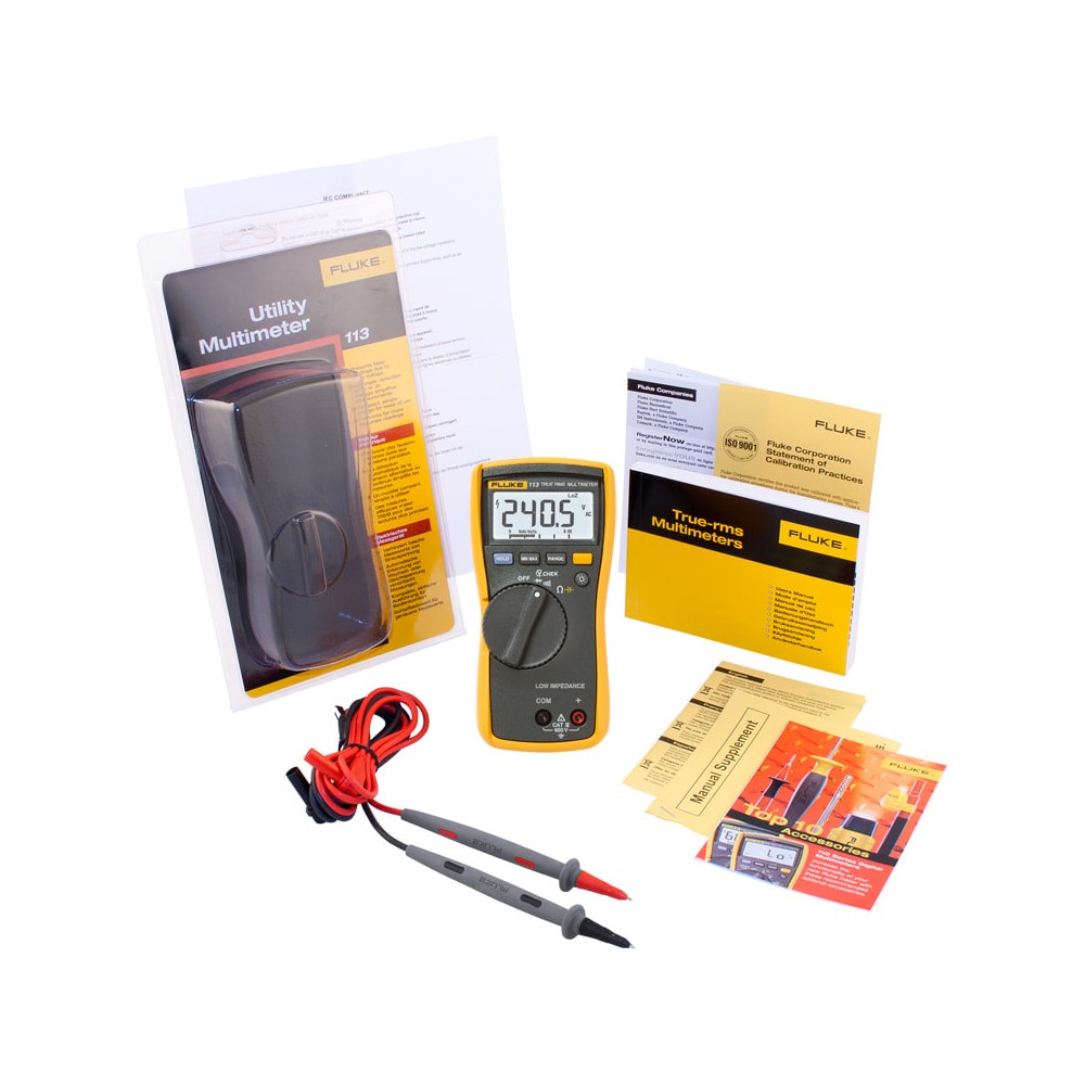 Fluke 113 соответствует стандартам безопасности CAT III 600 В и CAT IV 300 В, поэтому его можно использовать даже на вводах электроустановок и в распределительных щитах. Прибор выдерживает перенапряжения, характерные для таких участков сети.